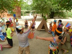 Детям очень нравится перевоплощаться, особенно если взрослые перевоплощаются вместе с детьми. Во дворе Центра детского творчества "ВИТА" творилось непонятное для прохожих и очень яркое, завараживающее зрелище- здесь хозяйничали племена индейцев. Они состязались в ловкости при ловле рыбы, в меткости, добывая мясо для племени, в смелости, переправляясь через озеро Мичиган на лодках-каноэ, в ловкости, объезживая диких мустангов, в смекалке, освобождая племя от змеи Анаконды. Яркие костюмы,приготовленные педагогами и ребятами в творческих мастерских заранее, боевой раскрас, исполнение ритуальных танцев, музыкальное оформление-все это полностью погрузило играющих в удивительное путешествие в глубь материка Северной Америки, в мир индейцев с его обычаями и бытом.